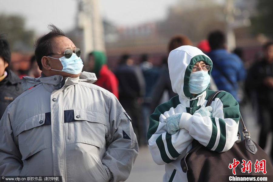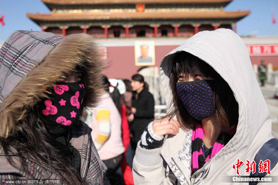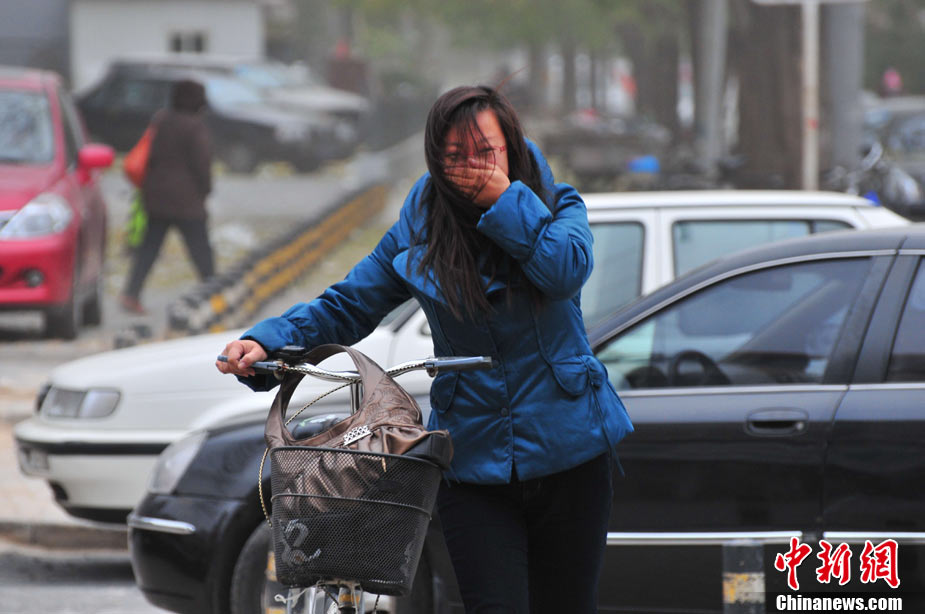 2010年11月21日,北京出現(xiàn)大風(fēng)天氣,風(fēng)力達(dá)到5-6級(jí),風(fēng)中伴有沙塵,給行人帶來諸多不便。陳曉根 攝 圖片來源:CFP視覺中國