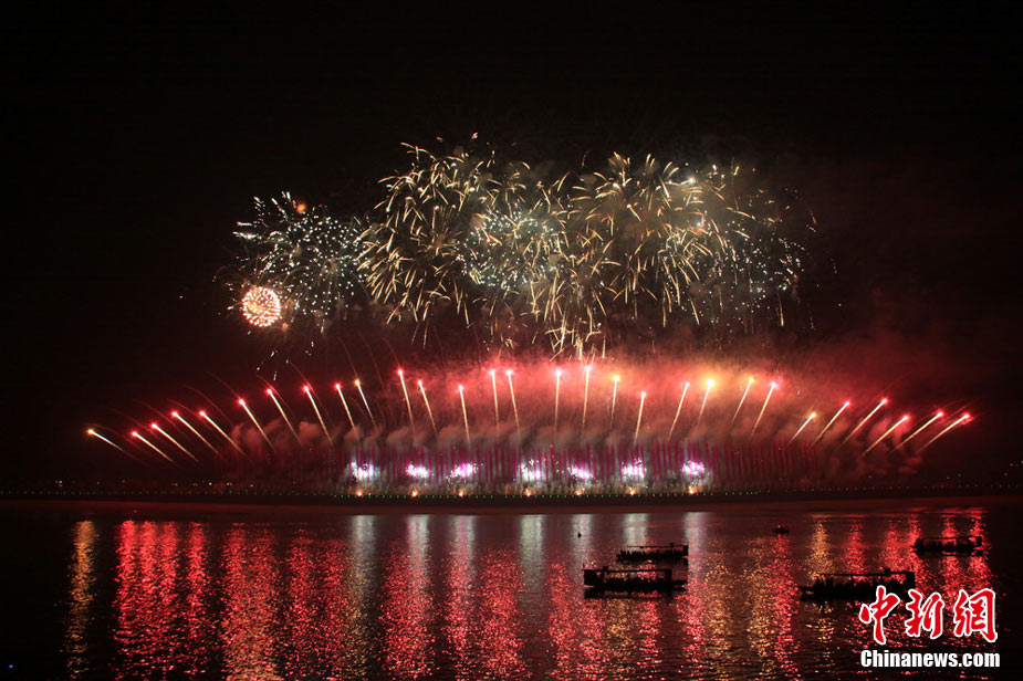 袁隆平院士手持稻穗躬身田間,身后是稻浪、青山和綠水相依相偎……11月20日晚8時,以“盛世農(nóng)博、光耀中部”為主題的專場音樂焰火晚會在長沙橘子洲頭焰火廣場燃放,為世人所熟悉的袁隆平在稻田間凝神工作場景以煙花素描的形式首現(xiàn)夜空。在22分鐘的燃放時間里,為市民奉獻了《致敬!袁隆平》、《神奇熱土》、《奮力耕耘》、《輝煌成果》、《燦爛前程》5個精彩篇章。當晚的音樂煙火首次以展現(xiàn)紀實人物山水畫面、日景煙花首次燃放夜空。其中袁隆平院士在實驗田里工作的場景通過一組45米×30米的造型圖案煙花再現(xiàn),有逾3萬發(fā)煙花生動打造袁隆平的逼真神態(tài),造型圖案煙花畫面中的稻田從綠到黃,從播種到收獲的動態(tài)場景讓觀賞的市民大嘆“驚艷”。 楊華峰 攝