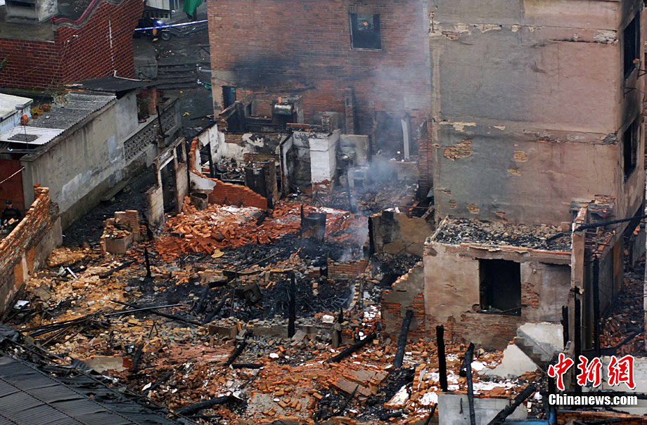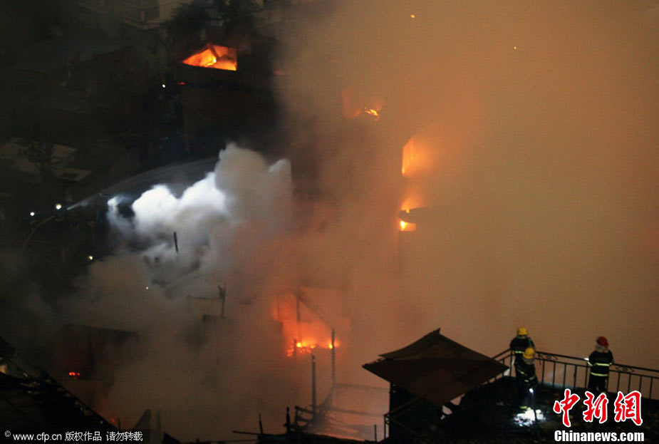 2010年11月21日晚近22時,福州臺江區(qū)新港街道中選社區(qū)附近一片民房發(fā)生火災(zāi),由于該民房附近主要為棚屋結(jié)構(gòu),大火迅速蔓延,燃燒一個多小時,火勢非常猛烈。劉影 攝 圖片來源:CFP視覺中國