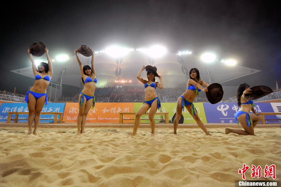 2010廣州亞運(yùn)會(huì)賽場(chǎng),激情四溢的沙排寶貝讓人印象深刻,身著比基尼凸顯傲人身材,火爆辣舞令賽場(chǎng)氣氛高潮迭起。賽場(chǎng)外的她們同樣精彩,總是給人帶來(lái)一種青春的律動(dòng)。中新網(wǎng)記者 金碩 攝