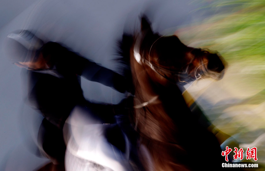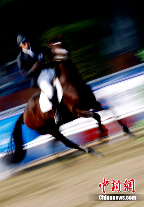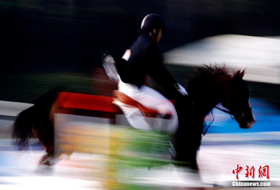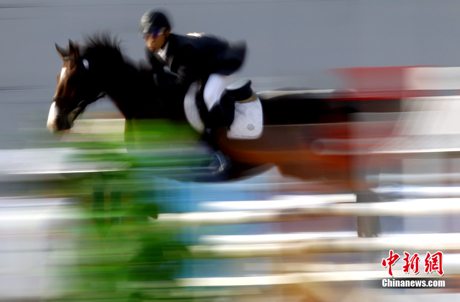 2010廣州亞運(yùn)會(huì)現(xiàn)代五項(xiàng)馬術(shù)賽場(chǎng)精彩瞬間。中新社記者 杜洋 攝