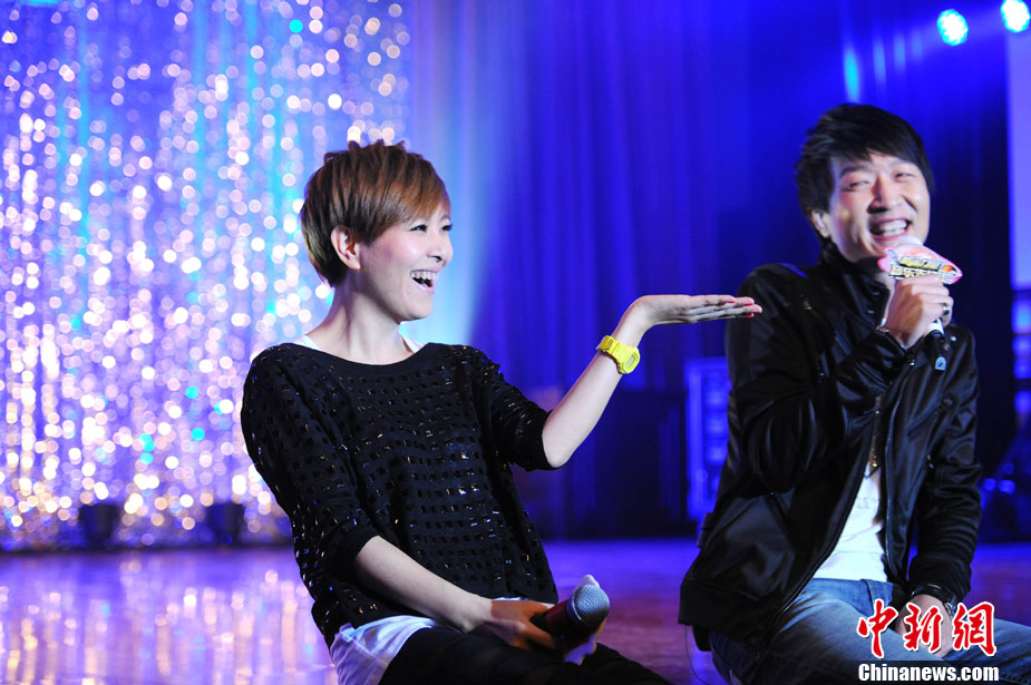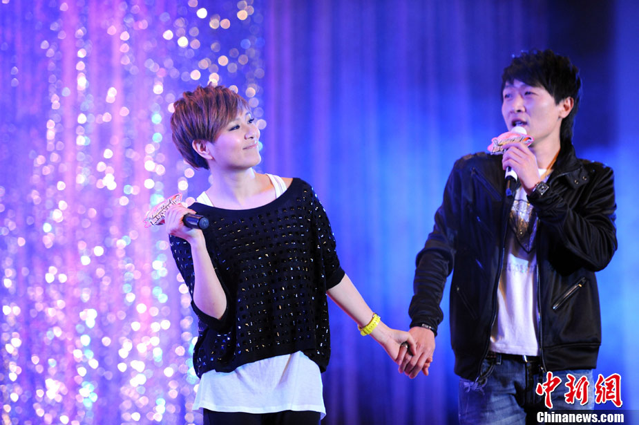 11月29日晚,2010公益進校園暨北京校園音樂演出季活動之李慧珍&樊凡主題歌友會在北京化工大學舉行,兩位歌手為歌迷們獻上了一首首經典的曲目。因演唱熱播電視劇《蝸居》主題曲爆紅的樊凡還親自譜曲了情歌《只需要一首歌》,并與李慧珍牽手甜蜜合唱,F(xiàn)場,積極投身愛心公益事業(yè)的樊凡和李慧珍還為貧困學生頒發(fā)了“媽媽的年夜飯”善款,并雙雙被北京婦女兒童基金會聘為“愛心大使”。圖為李慧珍、樊凡牽手獻唱。中新社記者 李學仕 攝