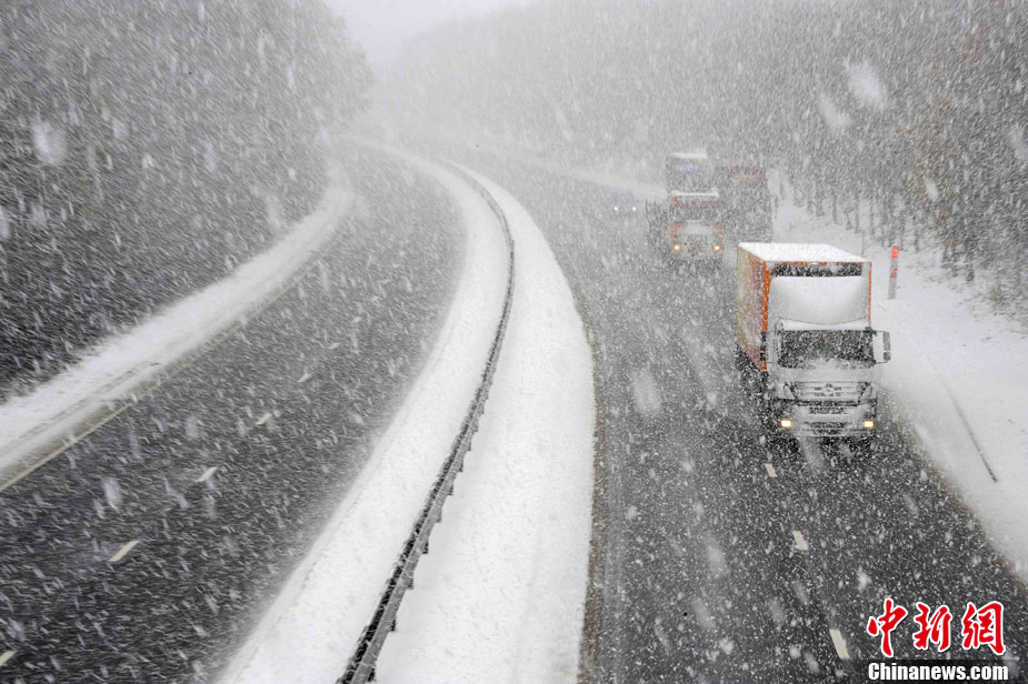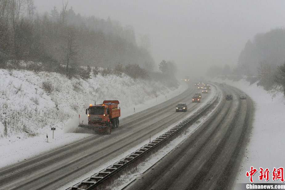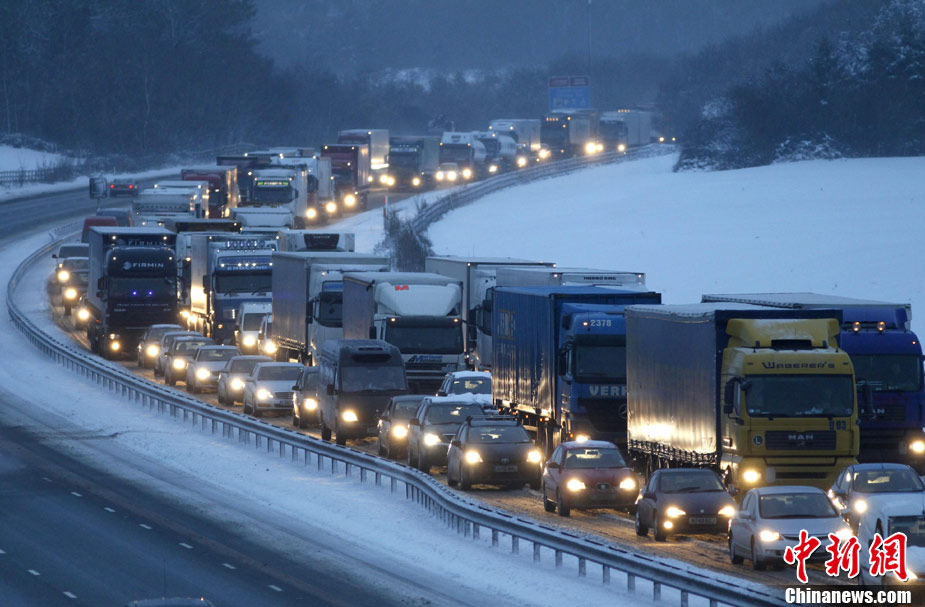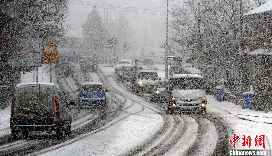 強冷空氣近日肆虐歐洲,多國遭到暴雪襲擊,目前已導(dǎo)致歐洲范圍內(nèi)至少13人死亡,并對各國陸空交通造成嚴(yán)重影響,航班被迫取消,多條公路關(guān)閉。圖為12月1日,在英國斯托克波特,車輛在暴雪中行駛。