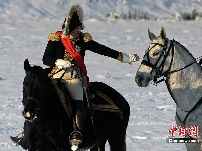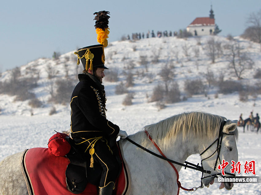 當(dāng)?shù)貢r(shí)間12月4日,捷克斯拉夫卡夫市,為紀(jì)念“三皇之戰(zhàn)'205周年,歷史軍事發(fā)燒友俱樂部的成員還原了當(dāng)時(shí)的戰(zhàn)爭(zhēng)場(chǎng)景。位于歐洲大陸中部的奧斯特利茨1805年12月2日爆發(fā)一場(chǎng)決定性戰(zhàn)役,對(duì)陣雙方分別是代表歐洲專制傳統(tǒng)的奧地利神圣羅馬帝國(guó)和沙皇俄國(guó)聯(lián)軍,以及乘大革命風(fēng)潮而起的法蘭西第一帝國(guó)軍隊(duì)。這場(chǎng)戰(zhàn)役又稱“三皇之戰(zhàn)”,因?yàn)榻粦?zhàn)雙方指揮官分別是神圣羅馬帝國(guó)皇帝弗朗茲二世、沙皇亞歷山大一世和法蘭西第一帝國(guó)皇帝拿破侖一世。