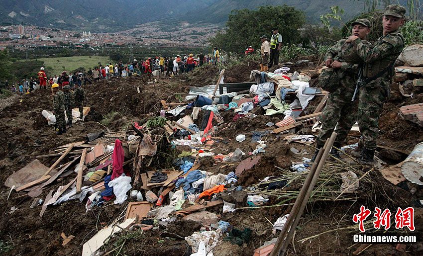 哥倫比亞暴雨導致山體滑坡 多人被埋