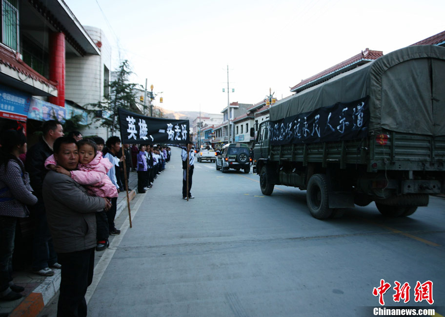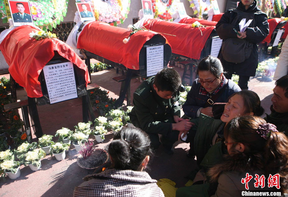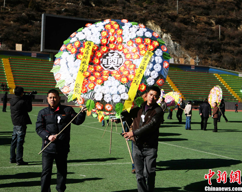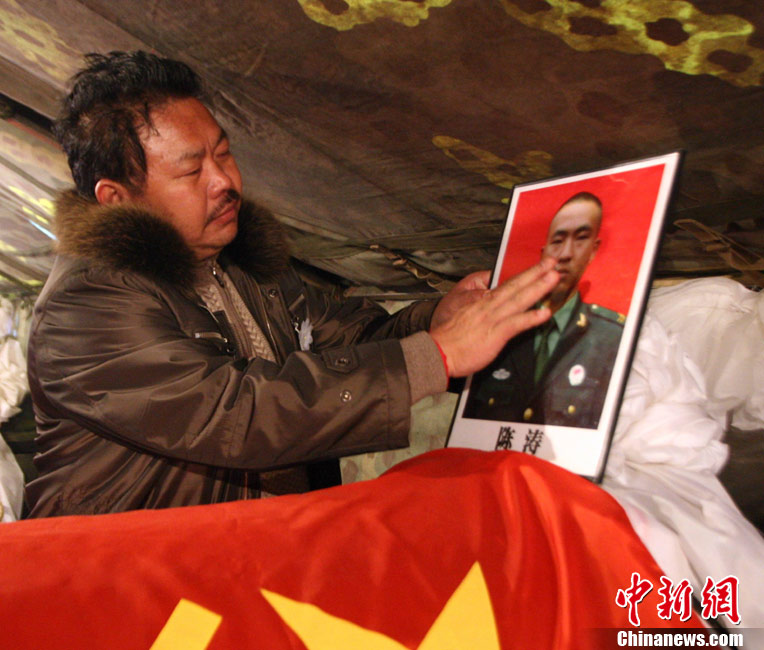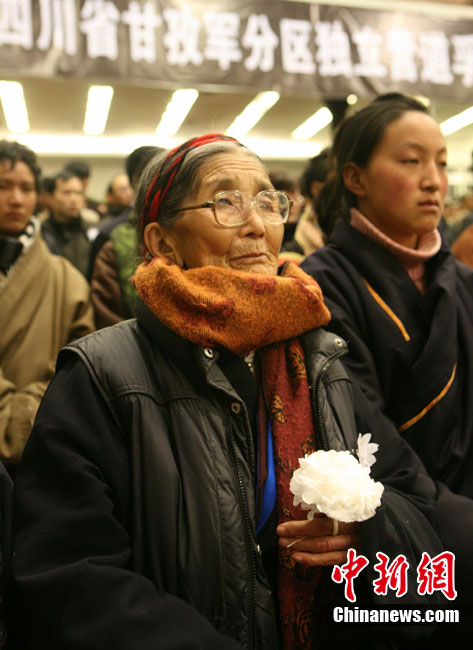12月8日,四川省甘孜軍分區(qū)獨(dú)立營(yíng)道孚“12·5”撲滅山火犧牲烈士遺體告別儀式在康定體育館舉行。圖為一位老人前來送別。中新社發(fā) 劉忠俊 攝
