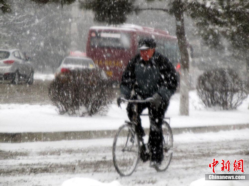 12月10日上午,長春街頭市民冒雪出行。從9日下午開始,吉林省遭遇大到暴雪,截至10日上午8時,長春市農(nóng)安縣降雪量最大,達到9.1毫米,雪深達12厘米。據(jù)悉,大雪致使長春龍嘉國際機場兩度關(guān)閉,共有9個進出港航班取消,千余名旅客滯留機場。中央氣象臺12月10日6時繼續(xù)發(fā)布暴雪藍色預(yù)警:12月10日08時至11日08時,遼寧東北部、吉林中東部、黑龍江大部等地有大雪(5~9毫米),其中,遼寧東北部的局地、吉林中東部偏北地區(qū)、黑龍江中東部偏南地區(qū)等地有暴雪(10~15毫米)。中新社發(fā) 李彥國 攝