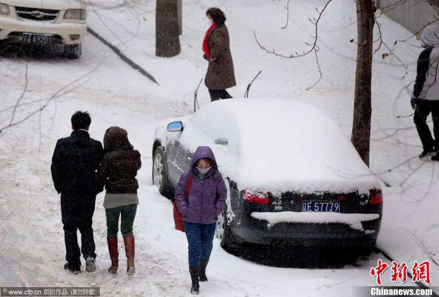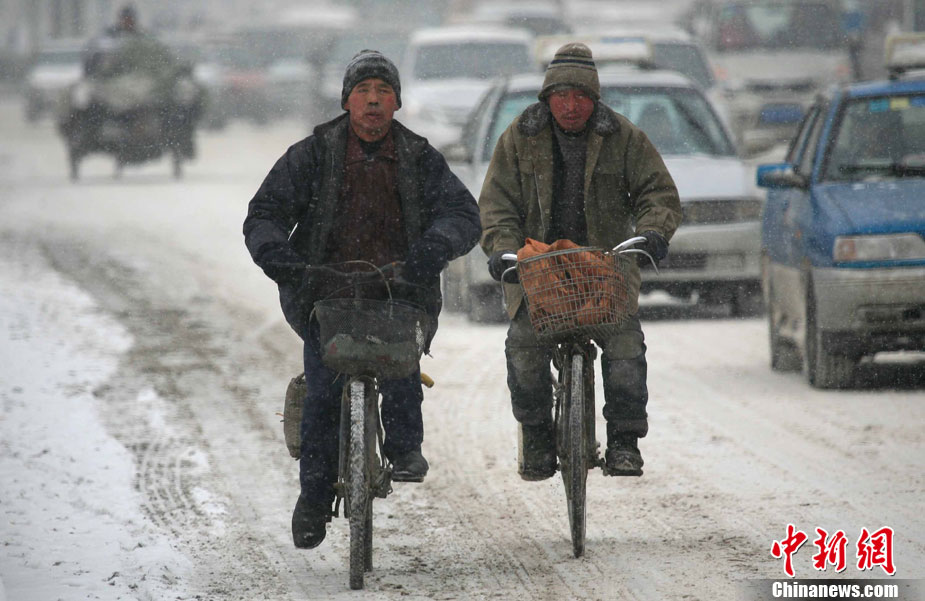 12月12日,沈陽(yáng)市再次降雪降溫,連續(xù)的強(qiáng)降雪和低溫大風(fēng)天氣給市民出行和交通運(yùn)輸造成影響。 中新社發(fā) 黃金昆 攝
