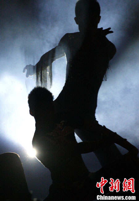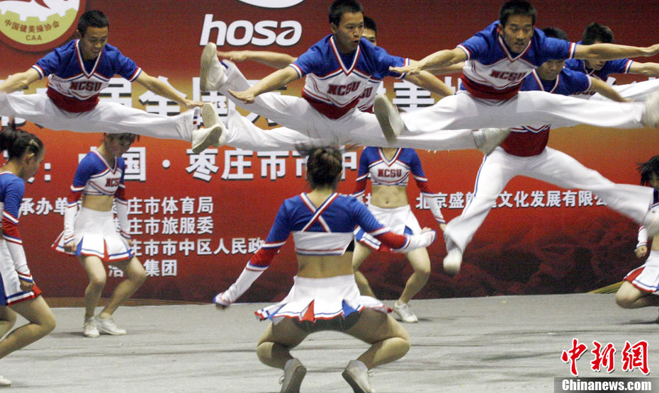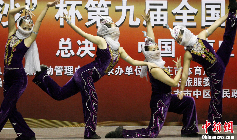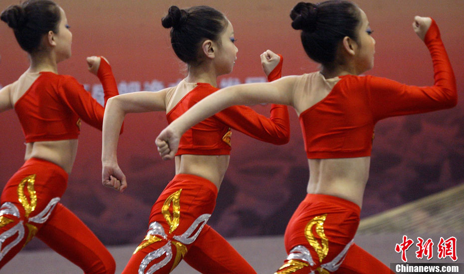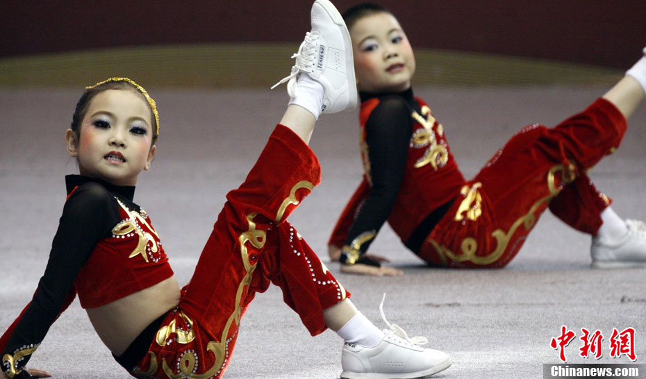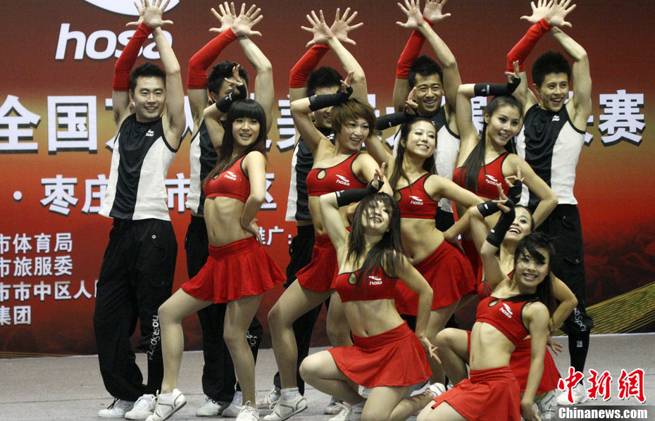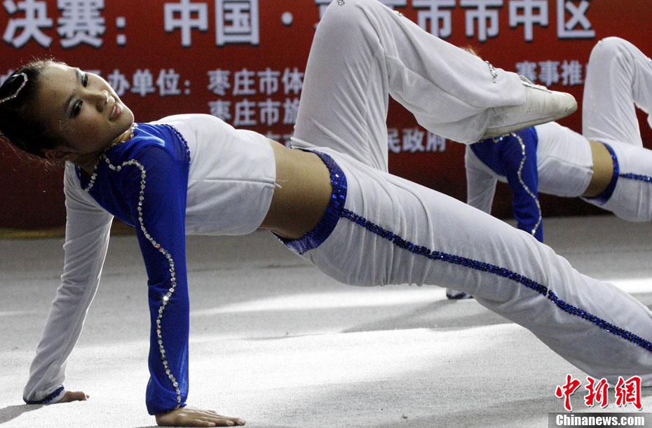12月12日晚,正在山東棗莊市體育館舉行的2010年第9屆“浩沙杯”中國內(nèi)地萬人健美操大賽舉行總決賽舉行頒獎晚會,來自中國內(nèi)地20個賽區(qū)的194個代表隊1700余名健美操選手參賽,賽事分為少兒組、小學(xué)組、中學(xué)組、大專學(xué)院組、健身俱樂部組、職工組、中老年組、家庭組、自選動作和排舞組共10個組別。其中參賽的最小年齡選手5歲、最大年齡的70歲。圖為在頒獎晚會上獲獎的代表隊展示健美操風(fēng)采。中新社記者 錢興強 攝
