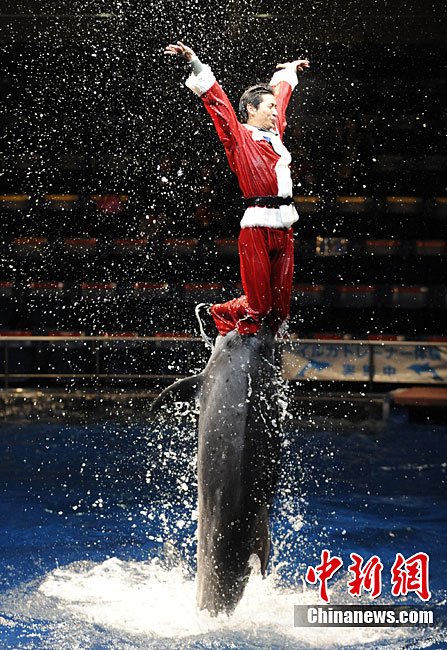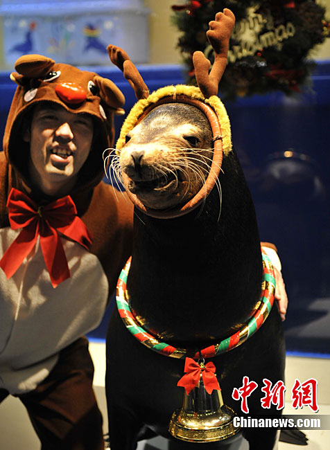 當(dāng)?shù)貢r(shí)間12月13日,日本東京一家水族館內(nèi)的海洋動(dòng)物進(jìn)行了一場(chǎng)精彩的圣誕表演。海豹、海豚為現(xiàn)場(chǎng)觀眾送去了一件件圣誕禮物。