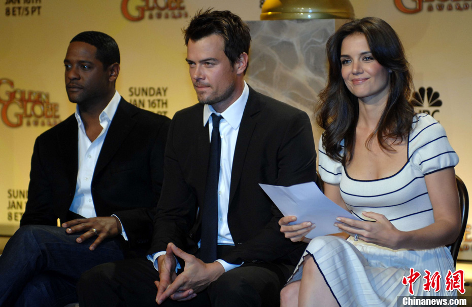 當(dāng)?shù)貢r(shí)間12月14日凌晨,第68屆美國(guó)金球獎(jiǎng)提名名單揭曉。《國(guó)王的演說》、《社群網(wǎng)戰(zhàn)》和《斗士》領(lǐng)跑電影類獎(jiǎng)項(xiàng)提名。圖為好萊塢明星、湯姆·克魯斯的妻子凱蒂·霍爾姆斯宣讀提名名單。中新社發(fā) 張煒 攝