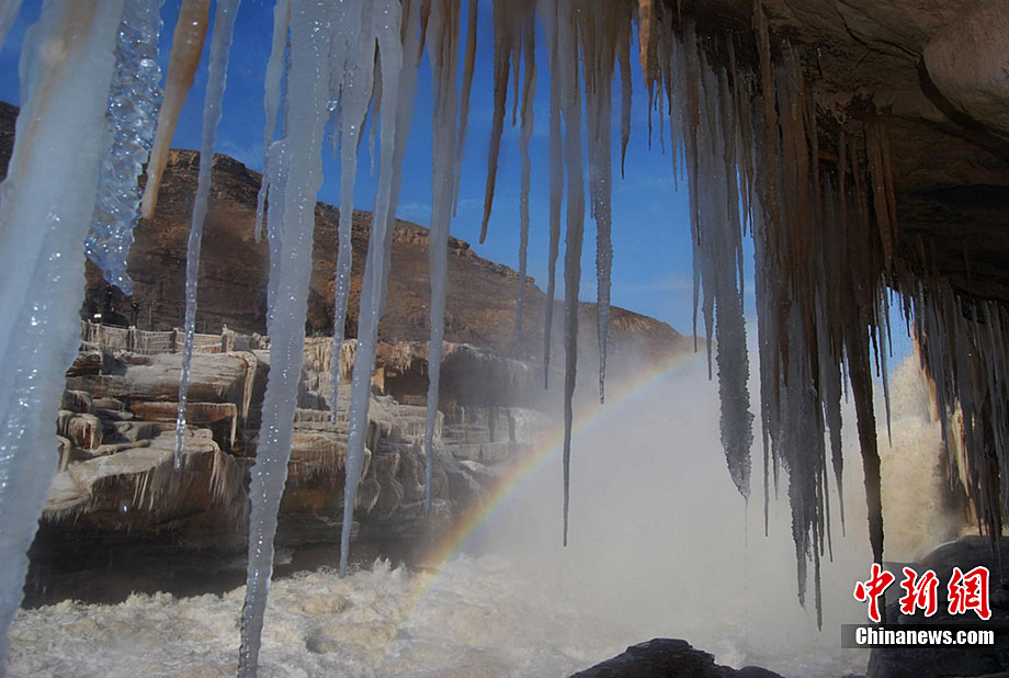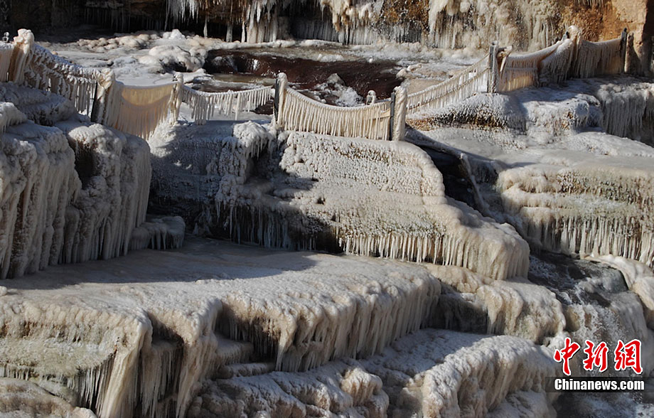 山西壺口瀑布出現(xiàn)冰掛美景