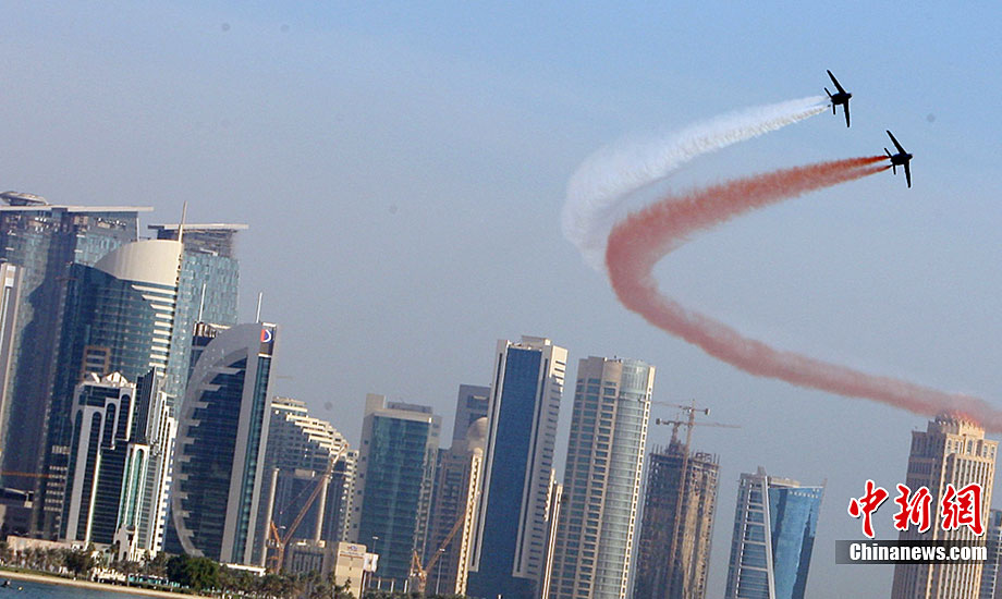 當(dāng)?shù)貢r(shí)間12月18日,卡塔爾首都多哈的海邊大道上舉行了盛大的國慶日閱兵式。