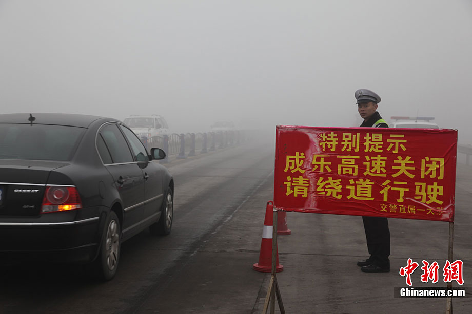 12月21日,四川眉山市遭遇大霧天氣,多數(shù)地方能見(jiàn)度不足30米,造成成(都)樂(lè)(山)、成(都)雅(安)高速公路全線長(zhǎng)時(shí)間封閉和長(zhǎng)途客車停運(yùn),給人們的出行帶來(lái)不便。堯遙 攝 圖片來(lái)源:CNSPHOTO