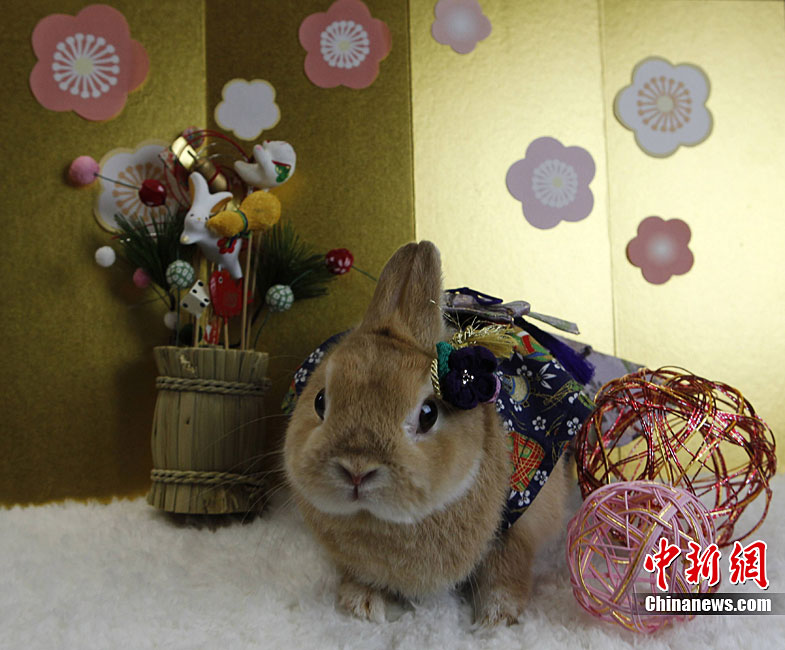 12月21日,日本橫濱一家寵物店的小兔子穿上傳統(tǒng)和服,迎接即將到來(lái)的圣誕節(jié)和兔年新年。日本自明治維新后采用公歷紀(jì)年,元旦即是兔年新年的開(kāi)始。