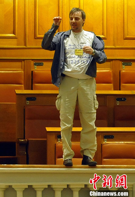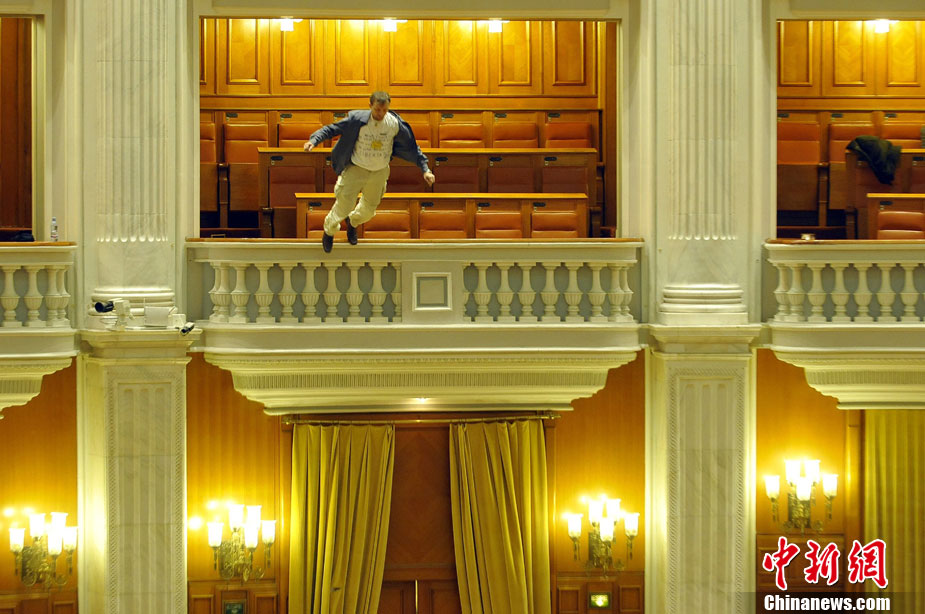 當?shù)貢r間12月23日,羅馬尼亞一名男子為抗議殘障兒子的社會福利遭刪減,從國會旁觀席的看臺跳下,震驚了總理及在場議員。不過經(jīng)緊急送醫(yī)后,這名男子脫離了生命危險。據(jù)悉,這名跳樓男子是電視臺的工程人員。