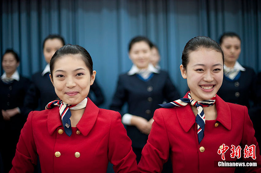 再過兩周,北京地區(qū)將較全國(guó)提前10天開始進(jìn)入春運(yùn)階段。為迎接春運(yùn),北京地區(qū)加開了至重慶、成都等地的動(dòng)車組。24日,新一批動(dòng)車組乘務(wù)員在石家莊接受完封閉培訓(xùn),將在春運(yùn)前走上崗位?崴瓶战愕膭(dòng)車組女乘務(wù)員,一顰一笑皆有規(guī)矩,給旅客帶來良好感覺的背后,是艱苦的訓(xùn)練。張沫 攝 圖片來源:CFP視覺中國(guó)
