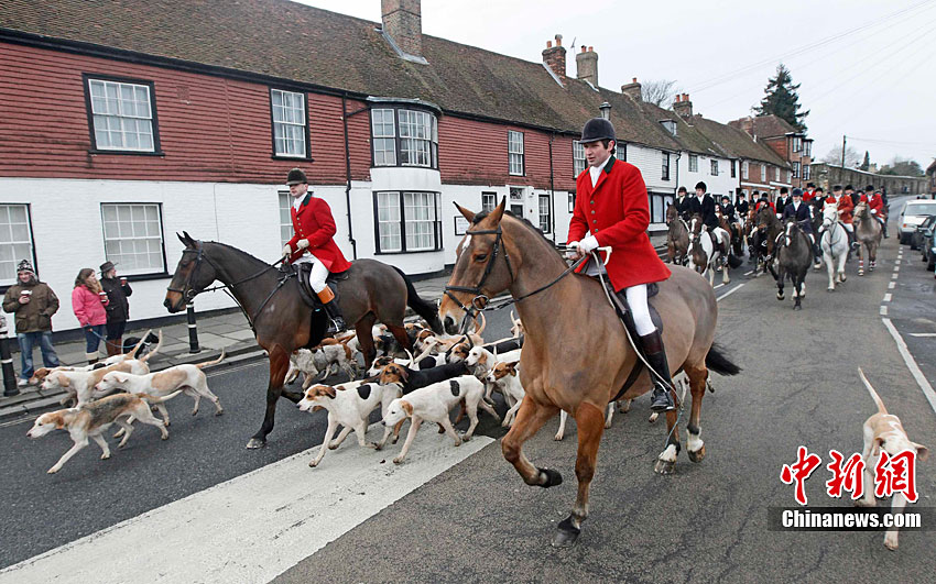 當(dāng)?shù)貢r(shí)間12月27日,英格蘭東南部肯特郡舉行了盛大的節(jié)禮日狩獵活動(dòng)開(kāi)幕式。眾多英國(guó)傳統(tǒng)狩獵愛(ài)好者攜帶獵犬參加了這一活動(dòng)。