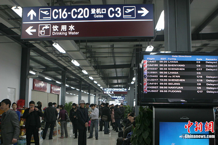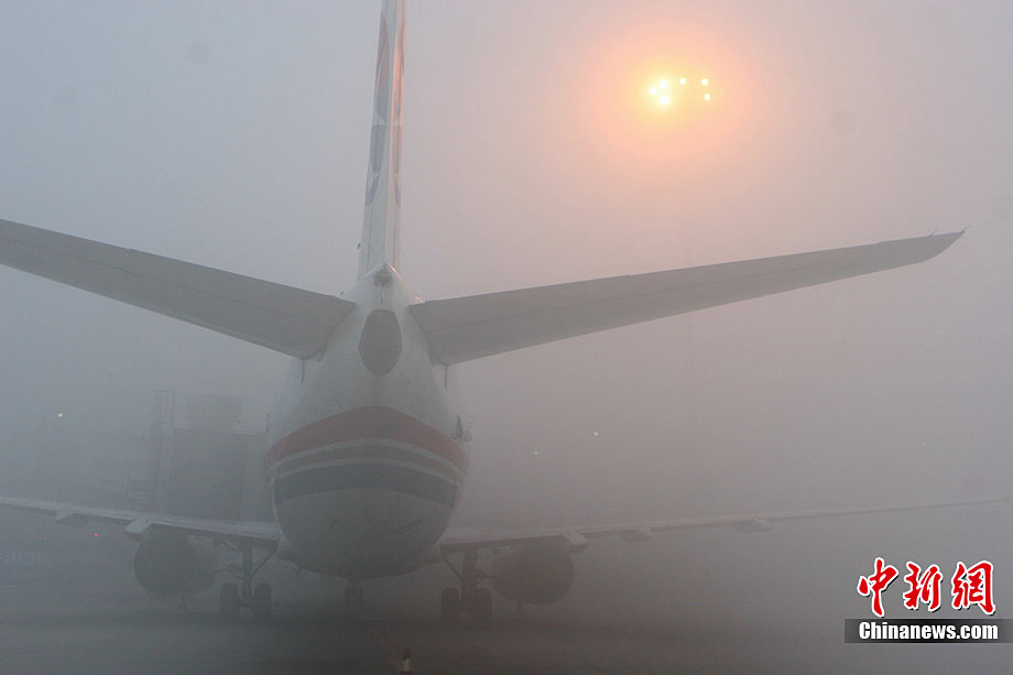 12月28日清晨3時(shí)左右,成都雙流國(guó)際機(jī)場(chǎng)遭遇大霧天氣襲擊。受此影響,機(jī)場(chǎng)被迫關(guān)閉長(zhǎng)達(dá)7個(gè)多小時(shí)。截至11時(shí),大霧造成110個(gè)進(jìn)出港航班延誤,近萬(wàn)名出行旅客被困機(jī)場(chǎng)。中新社發(fā) 呂俊明 攝