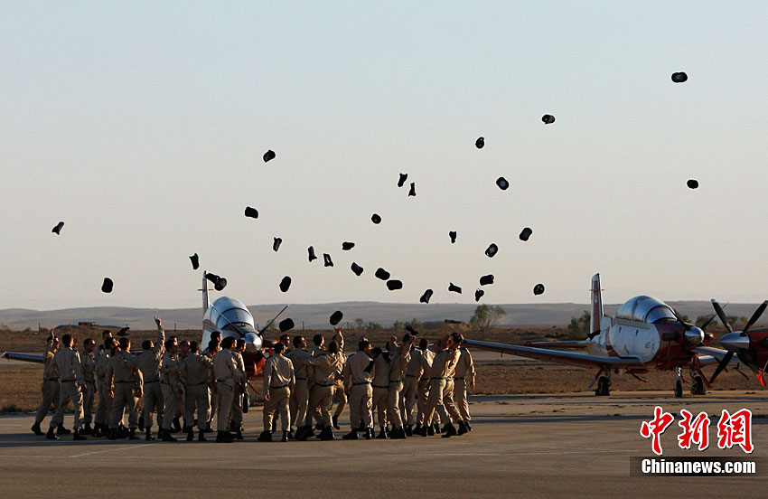 當(dāng)?shù)貢r間12月28日,在以色列南部城市貝爾謝巴附近的哈特澤里姆空軍基地,以色列空軍飛行學(xué)院的畢業(yè)生進(jìn)行飛行表演。當(dāng)日,數(shù)十名以色列空軍飛行學(xué)院的學(xué)員在這里舉行畢業(yè)典禮,并進(jìn)行飛行表演。