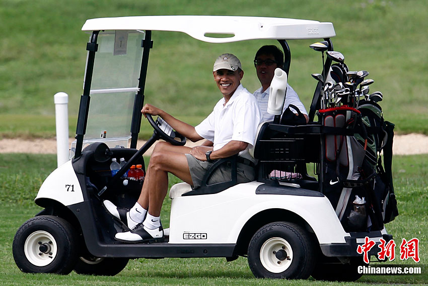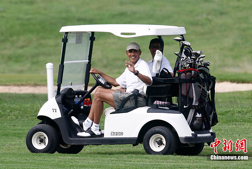 奧巴馬高爾夫球場(chǎng)享假期 當(dāng)司機(jī)大秀車(chē)技