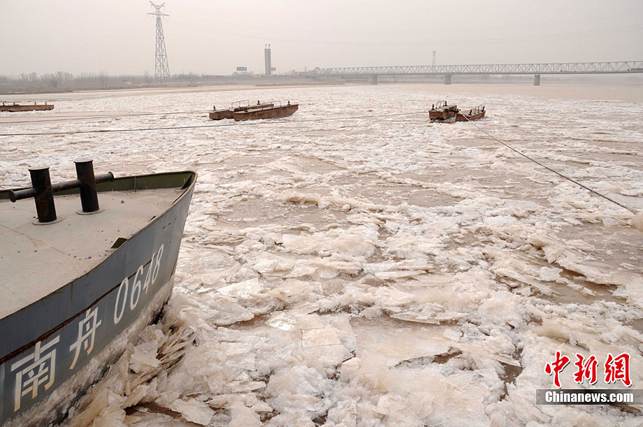 受新一輪強(qiáng)冷空氣影響,黃河下游河段封河迅速發(fā)展。截至12月28日,山東省濟(jì)南市黃河槐蔭河段以下全線流凌,最大流凌密度80%。針對黃河下游不穩(wěn)定封凍的特點(diǎn),黃河防總要求河南、山東黃河河務(wù)部門加強(qiáng)凌情觀測,全力做好各項(xiàng)防凌工作。張濱 攝 圖片來源:CNSPHOTO