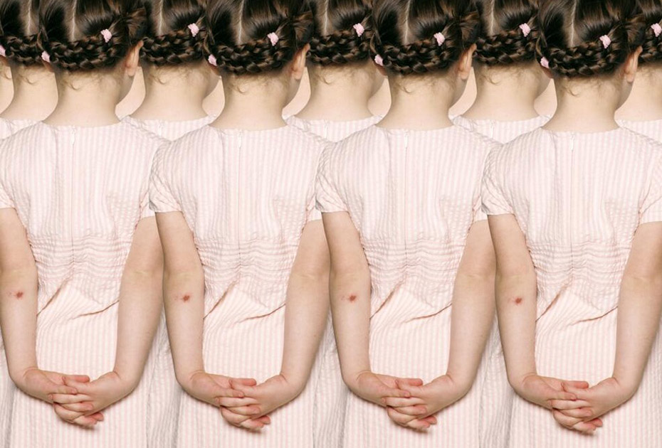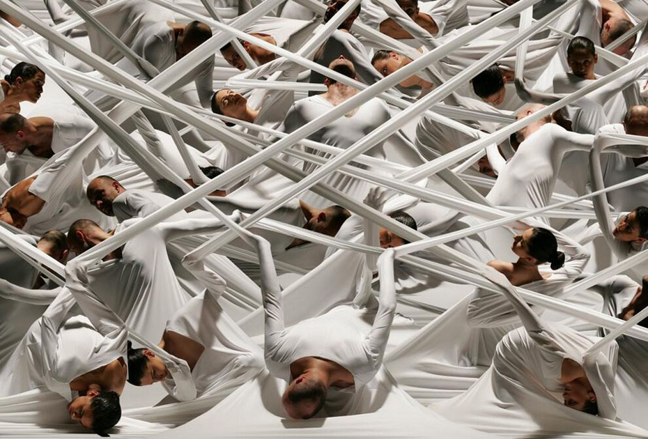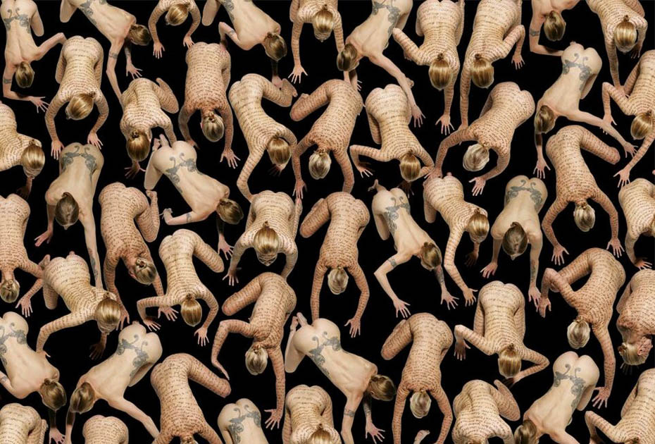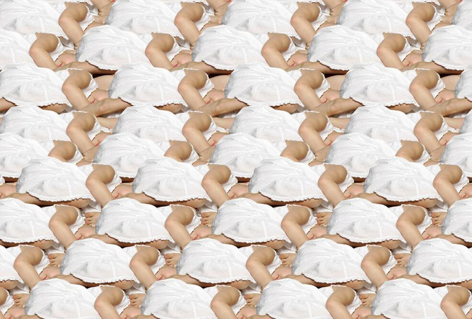 德國(guó)藝術(shù)家、攝影師Claudia Rogge,他非常癡迷圖案造型,也許你喜歡的圖案是類似于花紋或者墻紙那種,但他卻喜歡用人來(lái)組合圖案造型。他的這種癡迷促使他完成這個(gè)大手筆的制作:大量的模特?cái)[著相似的姿勢(shì),穿著相同的衣服,組成了稍顯恐怖的人體圖案。不可否認(rèn)的是,他的部分作品使用了后期特效。