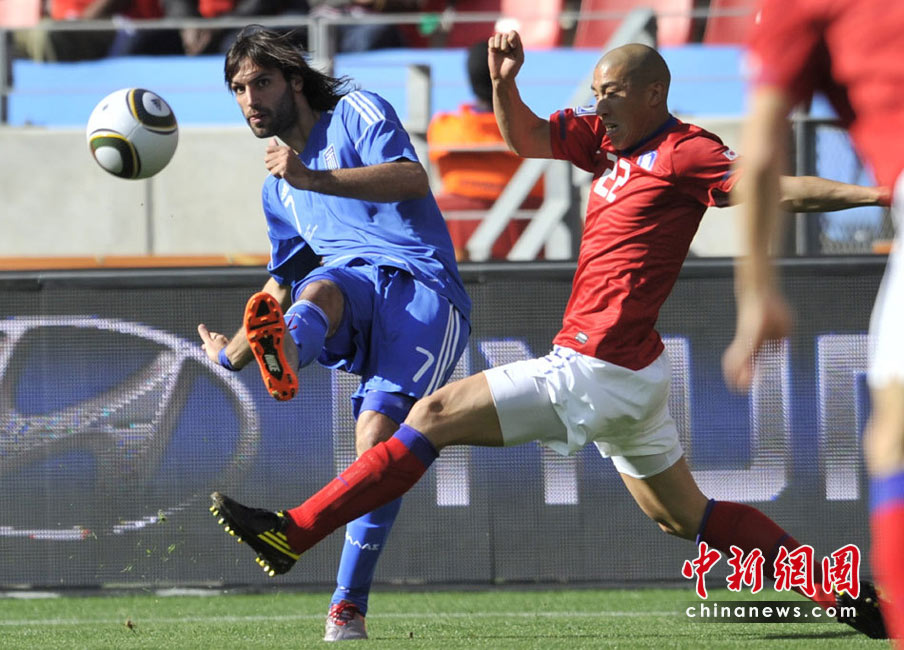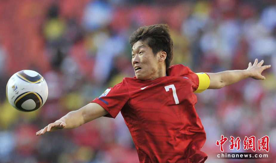 北京時(shí)間6月12日19點(diǎn)30分,南非世界杯B組小組賽拉開戰(zhàn)幕,由“太極虎”韓國(guó)迎戰(zhàn)歐洲勁旅希臘隊(duì)。圖為韓國(guó)隊(duì)李正秀先拔頭籌。
