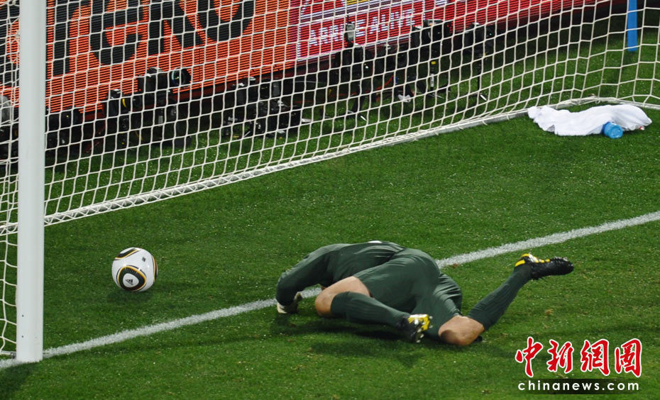 在13日凌晨2:30開始的一場(chǎng)南非世界杯小組賽中,英格蘭隊(duì)迎來了首個(gè)對(duì)手美國(guó)隊(duì),雖然蘭帕德在比賽開始后先拔頭籌,但上半場(chǎng)臨近結(jié)束前守門員格林的一次超低級(jí)失誤斷送好局,最終雙方1-1握手言和。 圖為格林失誤的瞬間。