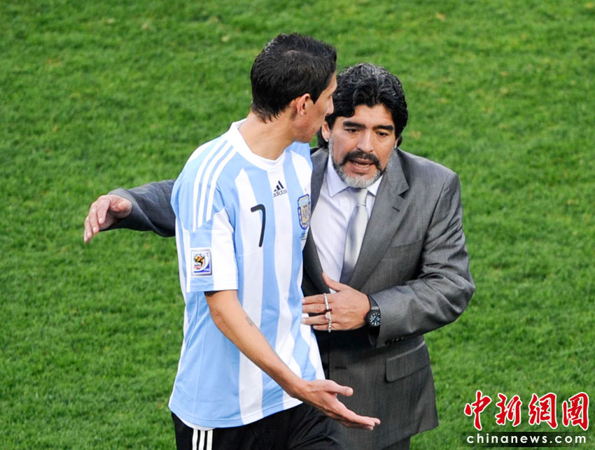 關(guān)注馬拉多納,期待梅西,阿根廷隊在南非世界杯上的首演沒有令等待他們的球迷失望,1比0擊敗非洲勁旅尼日利亞隊,“潘帕斯雄鷹”再添奪冠底氣。中新社記者 廖攀 攝