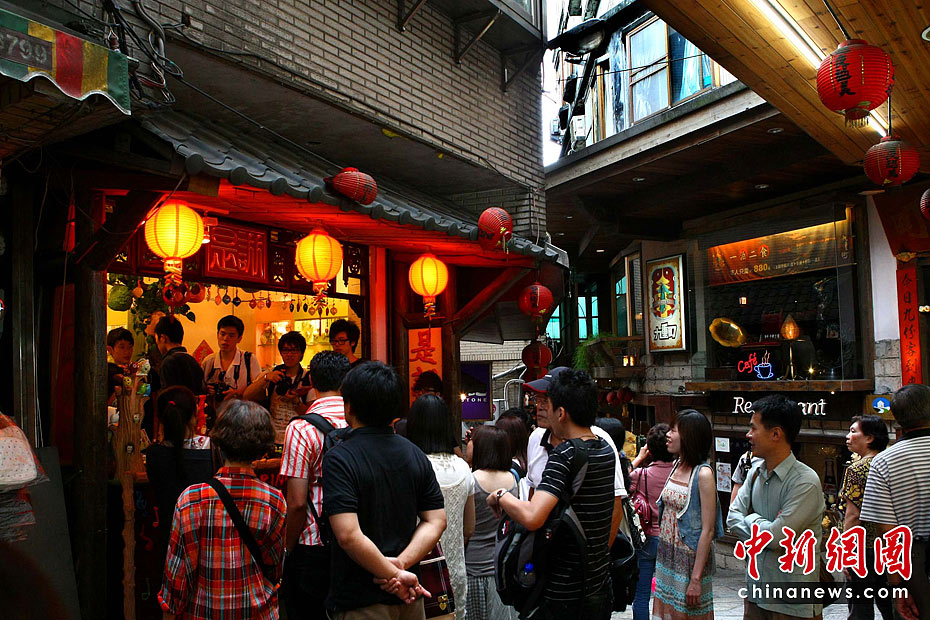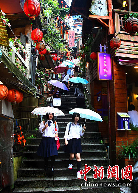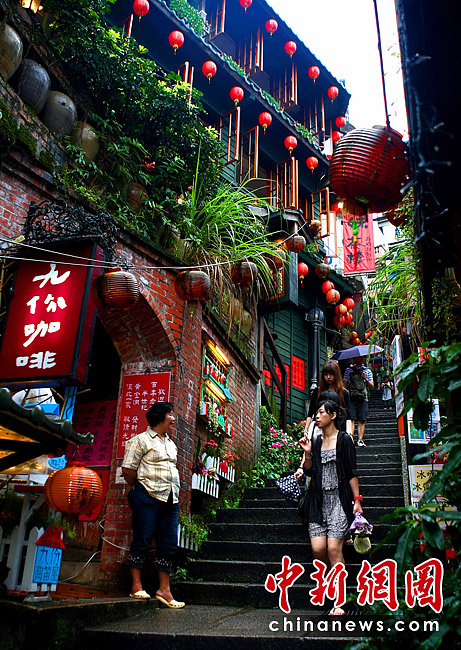 6月下旬的臺(tái)北九份陰雨連綿,據(jù)來(lái)過(guò)這里的人說(shuō),能趕上這種天氣是一種福氣。九份位于臺(tái)灣臺(tái)北縣瑞芳鎮(zhèn),早期因?yàn)槭a(chǎn)金礦而興盛,礦藏挖掘殆盡后從而沒(méi)落。1990年后,因電影《悲情城市》在九份取景,九份的獨(dú)特舊式建筑、坡地以及風(fēng)情,透過(guò)此片而吸引國(guó)內(nèi)外的注目,也為此小鎮(zhèn)重新帶來(lái)生機(jī),目前已經(jīng)成為一個(gè)很受歡迎的觀光景點(diǎn)。目前當(dāng)?shù)芈糜尾块T(mén)正在為游客提供更好的服務(wù)工作。中新社記者 宋吉河 攝