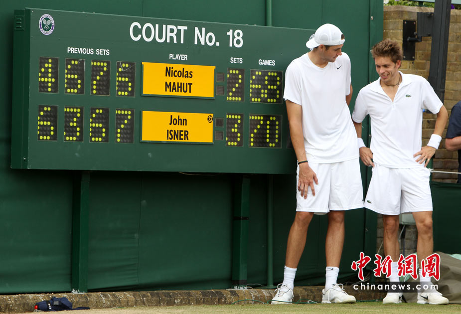 6月24日,2010年的溫布爾登網(wǎng)球大滿(mǎn)貫創(chuàng)造了一項(xiàng)吸引人眼球的紀(jì)錄。在男單首輪比賽中,法國(guó)的馬胡和美國(guó)大炮伊斯內(nèi)爾在決勝盤(pán)長(zhǎng)盤(pán)中制造了一系列恐怖紀(jì)錄。整場(chǎng)比賽耗時(shí)665分鐘,這是網(wǎng)球歷史上第一次一場(chǎng)比賽分3天來(lái)完成。