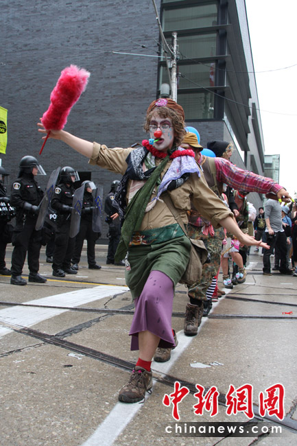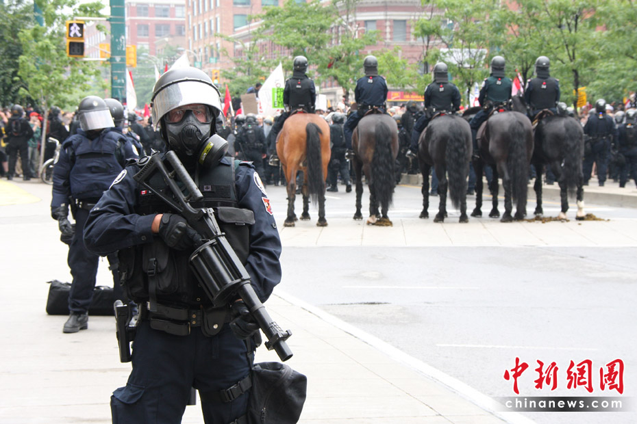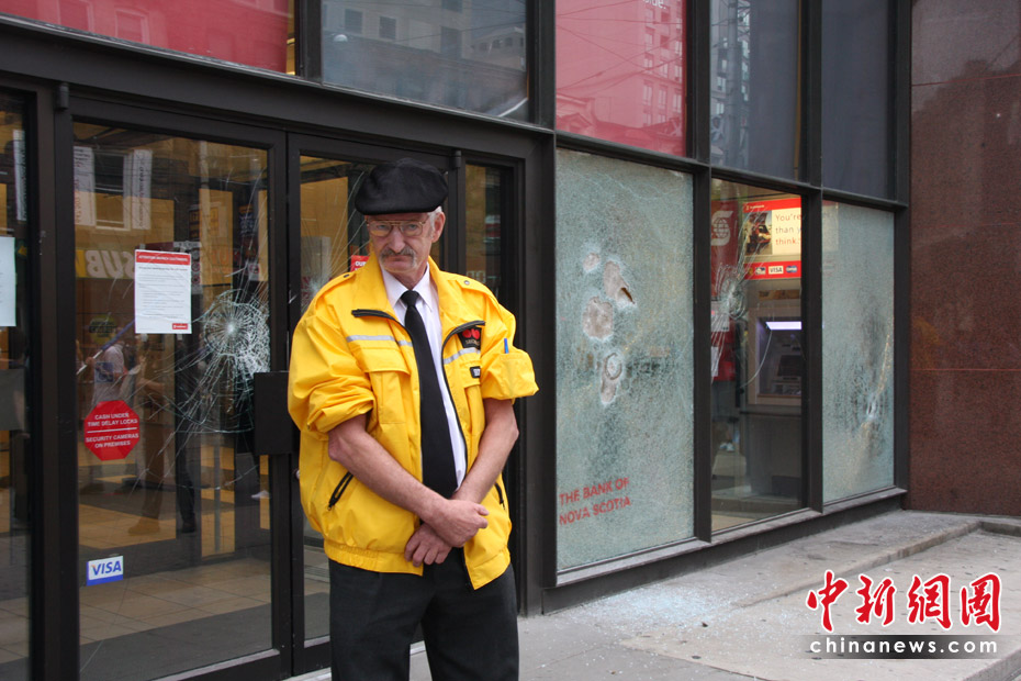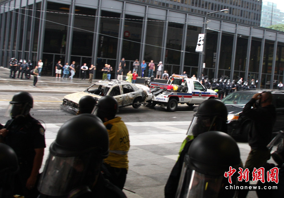 在加拿大多倫多舉行G20峰會期間,反峰會的一些團體26日舉行大規(guī)模游行示威抗議活動。在一些街道,多間銀行和商鋪店面受損,至少四輛警車被燒毀。捷克佳 攝