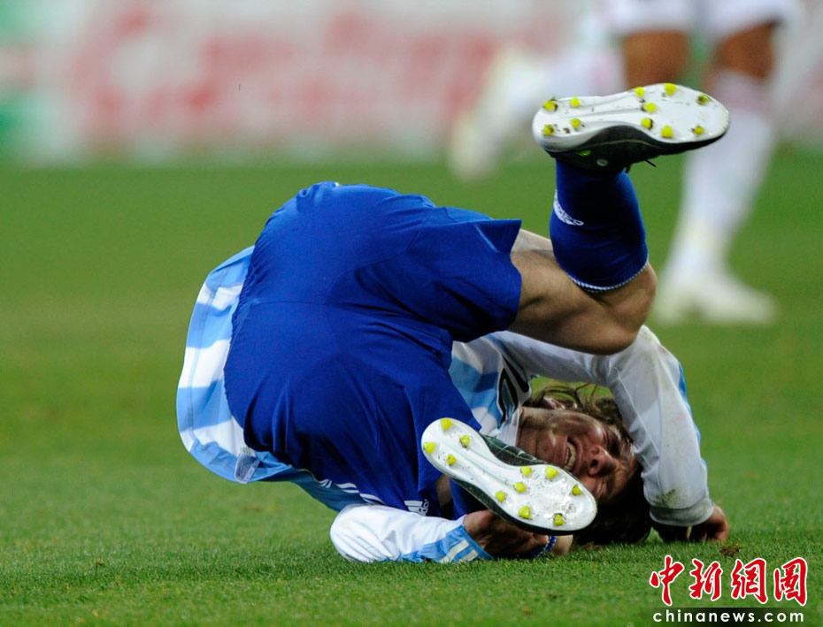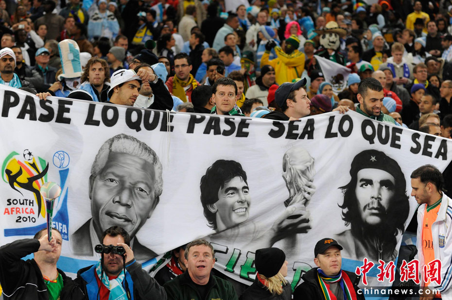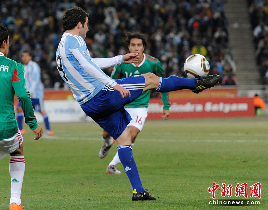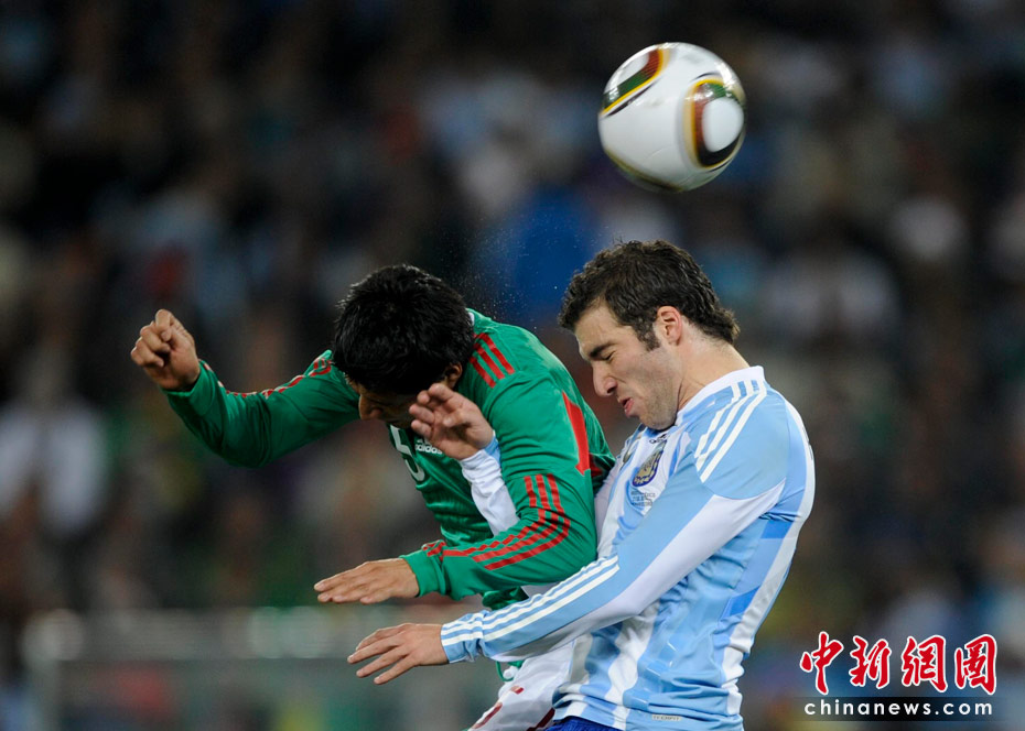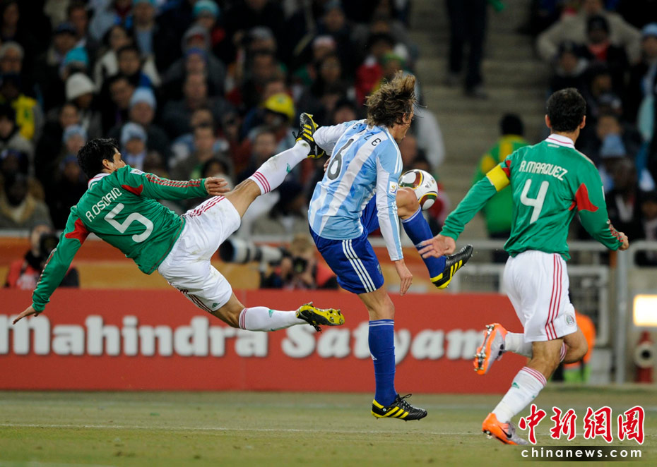 北京時(shí)間6月28日凌晨2:30,南非世界杯1/8決賽再賽一場,阿根廷隊(duì)在約翰內(nèi)斯堡的足球城球場迎來了墨西哥隊(duì)。憑借特維斯一個(gè)明顯越位進(jìn)球首開紀(jì)錄,隨后伊瓜因和特維斯各進(jìn)一球,以3-1擊敗墨西哥,晉級(jí)八強(qiáng)。 中新社記者 廖攀 攝