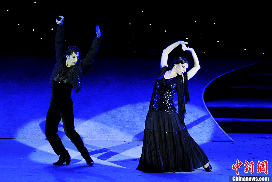 6月23日晚間,為期9天的第四屆中國(guó)成都國(guó)際非物質(zhì)文化遺產(chǎn)節(jié)在成都閉幕。以表彰保護(hù)、發(fā)揚(yáng)、傳承非物質(zhì)文化遺產(chǎn)先進(jìn)個(gè)人、集體為目的的“太陽(yáng)神鳥(niǎo)”獎(jiǎng)項(xiàng)也同時(shí)舉行了頒獎(jiǎng)儀式。閉幕式上,來(lái)自泰國(guó)、西班牙、剛果(金)等國(guó)的表演者以及中國(guó)四川、內(nèi)蒙古等地的藝術(shù)家,呈現(xiàn)了一場(chǎng)名為“文明的盛典”的藝術(shù)大餐。圖為閉幕式上的文藝演出。安源 攝