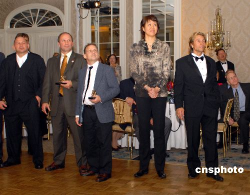 2007年新澤西冠軍之夜于當(dāng)?shù)貢r(shí)間10月20日在美國(guó)新澤西州希爾頓飯店舉行。大會(huì)會(huì)場(chǎng)放映著2008年北京奧運(yùn)會(huì)的宣傳片,場(chǎng)外北京奧運(yùn)會(huì)的宣傳畫到處可見,大會(huì)紀(jì)念冊(cè)的封面上印著北京奧運(yùn)會(huì)紀(jì)念章。中國(guó)著名女排運(yùn)動(dòng)員、現(xiàn)任美國(guó)女排主教練的郎平作為大會(huì)特邀嘉賓出席了當(dāng)晚的活動(dòng),中新社發(fā) 龔文謨 攝