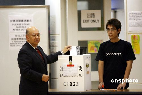 十一月十四日,香港選舉管理委員會主席彭鍵基法官巡視設(shè)于九龍公園體育館的模擬投票站。香港區(qū)議會選舉將于十一月十八日舉行,全港共設(shè)立了四個模擬投票站,讓選民預(yù)先熟習(xí)有關(guān)的投票程序。中新社發(fā) 武仲林 攝