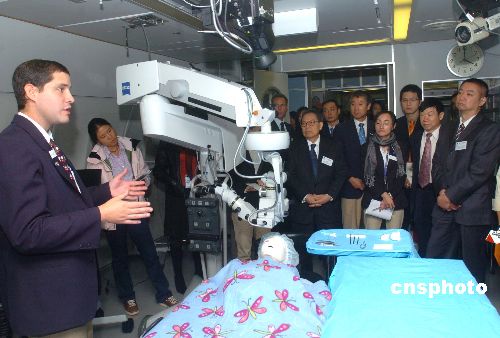 十二月五日,澳門特首何厚鏵(左四)在澳門國際機場親自主禮奧比斯眼科飛機醫(yī)院"光明之行"活動開幕典禮。肩負(fù)全球救盲使命的奧比斯眼科飛機醫(yī)院來澳,將與澳門國際機場合作開展為期三天的"光明之行"參觀活動及慈善拉飛機活動,旨在鼓勵市民關(guān)注全球失問題,喚起愛心,救助盲人。 中新社發(fā) 史利 攝