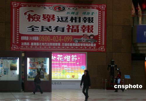 圖:臺(tái)"立委"選舉投票日近 車站高懸抓賄選有獎(jiǎng)廣告