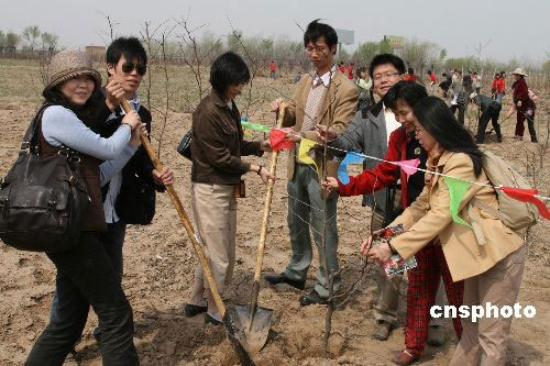 4月5日,由臺灣成人教育學(xué)會、商業(yè)教育學(xué)會以及在天津讀書的臺灣籍學(xué)生代表40余人組成的愛心團(tuán)隊,來到“愛心媽媽”王愛麗創(chuàng)辦的天津市太陽村特殊兒童救助服務(wù)中心,參加海峽兩岸“根連根”植樹活動,與天津大專院校學(xué)生代表一起種植“友誼樹”,冀望兩岸同胞的友誼,枝繁葉茂,茁壯成長。中新社發(fā) 田齊 攝