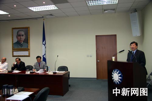 臺(tái)灣地區(qū)當(dāng)選領(lǐng)導(dǎo)人馬英九14日在面對(duì)港澳媒體的記者會(huì)上證實(shí),將由東吳大學(xué)校長(zhǎng)劉兆玄出任“行政院長(zhǎng)”。劉兆玄1943年5月出生,湖南省衡陽(yáng)縣人。1965年臺(tái)灣大學(xué)化學(xué)系畢業(yè),曾任臺(tái)灣當(dāng)局“交通部”部長(zhǎng)、“行政院副院長(zhǎng)”。2004年出任東吳大學(xué)校長(zhǎng),現(xiàn)任國(guó)民黨中常委。圖為2007年6月,劉兆玄在國(guó)民黨中常會(huì)上就經(jīng)貿(mào)問(wèn)題作演講。中新社記者 耿軍 攝