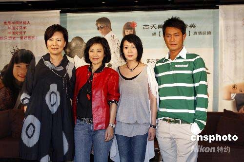 4月23日,張艾嘉(左二)帶著奶茶劉若英(右二)、古天樂(lè),以及片中客串的港星陶敏明在臺(tái)北為愛(ài)情結(jié)晶喜劇《一個(gè)好爸爸》造勢(shì)。本片由成龍親自監(jiān)制,是張艾嘉繼《20.30.40》后籌備三年的執(zhí)導(dǎo)力作。她在此片突破常規(guī)染指黑幫的花花世界,用豐富和幽默真摯情感打動(dòng)觀眾,成為導(dǎo)演生涯中最有創(chuàng)作力一次。男女主角古天樂(lè)、劉若英飾演一對(duì)經(jīng)歷廿年愛(ài)情試煉的夫妻,激情有默契,雋永而清新。《一個(gè)好爸爸》將于4月25日在臺(tái)灣公映。中新社發(fā) 杜洋 攝