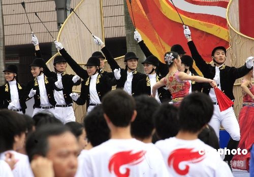 圖:馬術(shù)表演助興奧運(yùn)圣火傳遞
