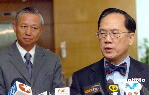 五月十三日,香港特別行政區(qū)行政長官曾蔭權在香港會見傳媒,慰問四川大地震災民,并表示特區(qū)政府會盡力支援及配合,將兵分三路協(xié)助中央救災。中新社發(fā) 鄧慶樂 攝