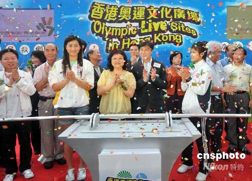 為營造熱烈的奧運氣氛,讓香港市民積極投入北京二零零八年奧運會,香港康樂及文化事務(wù)署七月八日宣布,將于八月奧運會舉行期間在維多利亞公園及沙田公園設(shè)立奧運文化廣場。圖為香港民政事務(wù)局常任秘書長尤曾家麗及康文署署長周達(dá)明與香港精英運動員、十八區(qū)區(qū)議會和體育總會的代表出席當(dāng)日舉行的開展儀式。 中新社發(fā) 鄧慶樂 攝