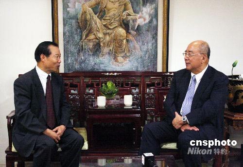 7月8日,海峽兩岸關(guān)系協(xié)會副會長王在希在臺北與中國國民黨主席吳伯雄會見。吳伯雄表示,7月4日開始的兩岸周末包機以及大陸居民赴臺旅游,都很重要。希望彼此的交流有助于促進(jìn)兩岸的了解和友誼。中新社發(fā) 黃少華 攝