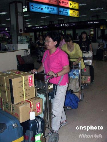十天前赴臺(tái)旅游的大陸首發(fā)團(tuán)七百多人,7月13日陸續(xù)搭乘海南航空、南方航空、東方航空和中國國際航空公司周末包機(jī)返回北京、廣州和上海,結(jié)束了時(shí)隔近六十年后,大陸居民赴臺(tái)旅游首發(fā)團(tuán)的十日環(huán)島行程。十天時(shí)間里,首發(fā)團(tuán)在臺(tái)灣同胞協(xié)助下,漫步阿里山、日月潭,暢游墾丁,游覽花蓮太魯閣,看盡寶島風(fēng)光,也近距離接觸臺(tái)灣風(fēng)土人情、人文景觀,開啟了兩岸民眾的親密接觸。中新社發(fā) 徐長安 攝