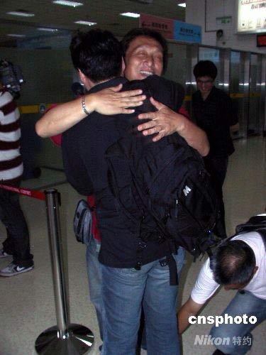 圖為臺(tái)北松山機(jī)場,北京首發(fā)團(tuán)離臺(tái)時(shí),團(tuán)員與相處了十天的臺(tái)灣導(dǎo)游熱情相擁、依依不舍。他們彼此相約北京,不見不散。