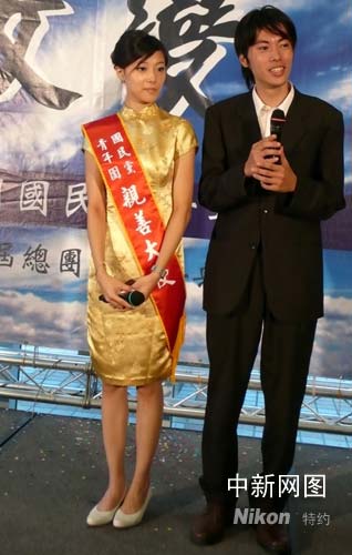 圖為中國國民黨青年團(tuán)新任總團(tuán)長、政治大學(xué)研究生梁靧(右)與中國國民黨青年團(tuán)親善大使施佳玫。