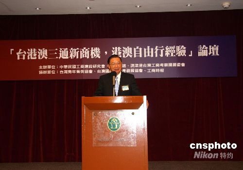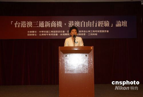 9月19日下午,臺灣;鶗麻L江炳坤、臺灣“觀光局”局長賴瑟珍出席“臺港澳三通新商機(jī),港澳自由行經(jīng)驗”論壇。中新社發(fā) 曾福志 攝